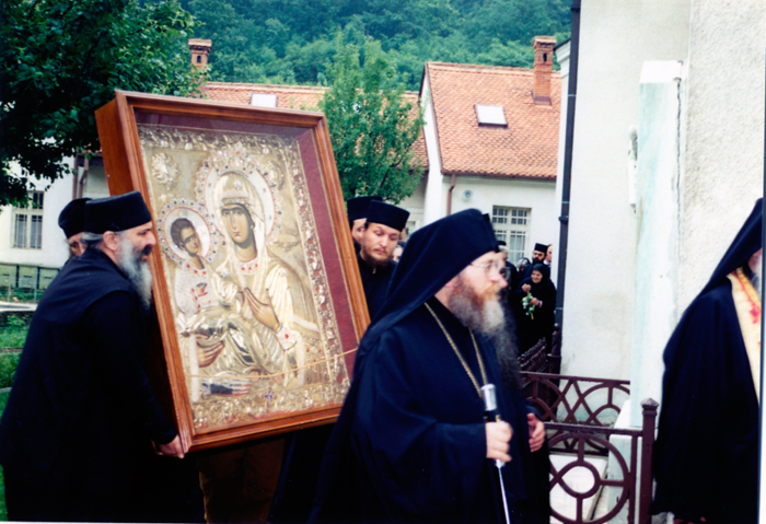 Ως Ηγούμενος της Μονής του Βατοπαιδίου και εκπρόσωπος της Ιεράς Κοινότητος και συνόλου του Αγίου Όρους, κατ’ αυτήν την στιγμήν της υποδοχής, του αντιγράφου της θαυματουργού εικόνος της Παναγίας της Τριχερούσης, από την ηγεσίαν της δοκιμαζομένης αδελφής Σερβικής Ορθοδόξου Εκκλησίας και τον ευλαβή λαόν της, αισθάνομαι την ανάγκην να ευχαριστήσω από τα βάθη της ψυχής μου την Μητέρα του Θεού την Πανάχραντον Θεοτόκον, διά της οποίας την τιμήν ευρισκόμεθα σήμερον άπαντες εδώ, διότι μας ηξίωσε ως ταπεινούς δούλους και όργανά της να συνεχίσωμεν την προσπάθειαν του απεριγράπτου έργου της θείας στοργής και προνοίας της, το οποίον η ιδία πριν από οκτώ αιώνες ήρχισε στην χώραν αυτήν.