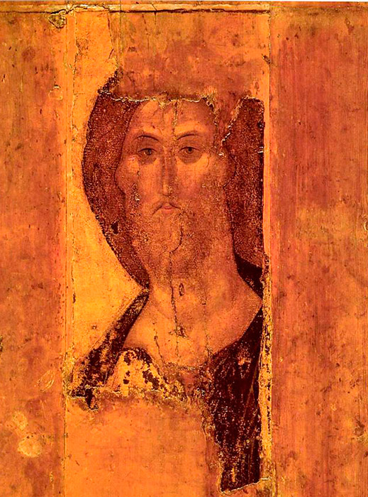 Αν και το όνομα του Ρουμπλιόφ αναφέρεται στα χρονικά κατασκευής των διαφόρων εκκλησιών, ο ίδιος έγινε γνωστός ως καλλιτέχνης μόνο στις αρχές του 20ού αιώνα, μετά την αποκατάσταση της “Αγίας Τριάδας” το 1904. Στην εικόνα αυτή του Ρουμπλιόφ, η προσοχή επικεντρώνεται στους τρεις αγγέλους και τη σιωπηλή συνομιλία τους. Ο Πατέρας Θεός ευλογεί τον θάνατο του Υιού στο σταυρό της αγάπης για όλους τους ανθρώπους. Το Άγιο Πνεύμα (ο άγγελος δεξιά) είναι παρών ως μια παρηγοριά, που επιβεβαιώνει το βαθύτερο νόημα της θυσίας. / Η Αγία Τριάδα, 1410.