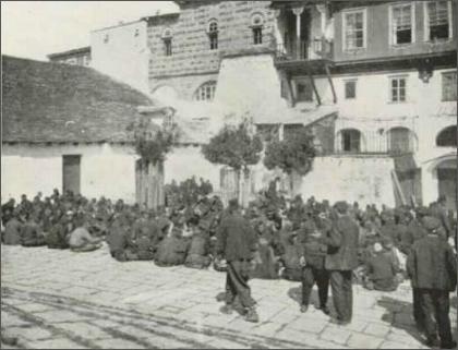 Μοναχοί και λαϊκοί επισκέπτες του Μοναστηριού για τον εορτασμό του Ευαγγελισμού της Θεοτόκου, στις 25 Μαρτίου 1916.