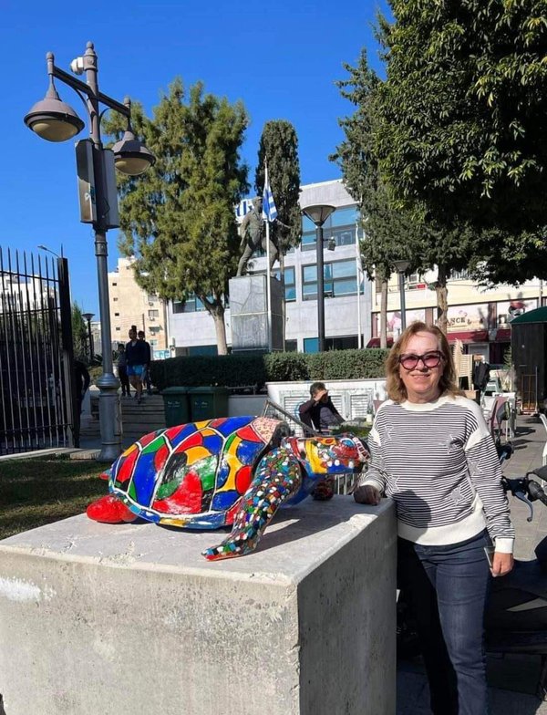 Η δημιουργός του γλυπτού στην Πλατεία Πανεπιστημίου. Φωτογραφία: Elena Shiakalli/ FB/ Η ΛΕΜΕΣΟΣ. Πλατεία Πανεπιστημίου