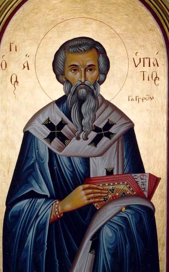 Εορτάζει στις 31 Μαρτίου εκάστου έτους. Κτείνει γυνή βαλούσα καιρίαν λίθω, Τον Υπάτιον· φευ γυναικί αθλία! Πρώτη Υπατίω βιότου...