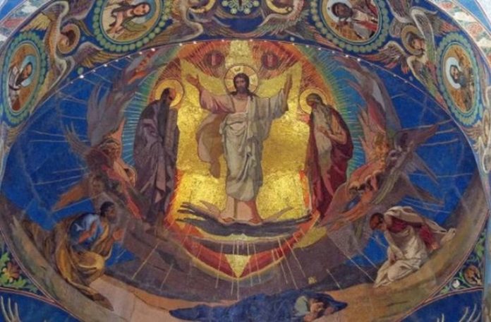 Ἡ Μεταμόρφωση τοῦ Χριστοῦ, λίγες μέρες πρὶν ἀπὸ τὴ Σταύρωσή Του, μπροστὰ στοὺς τρεῖς μαθητές Του, τὸν Πέτρο, τὸν Ἰάκωβο...
