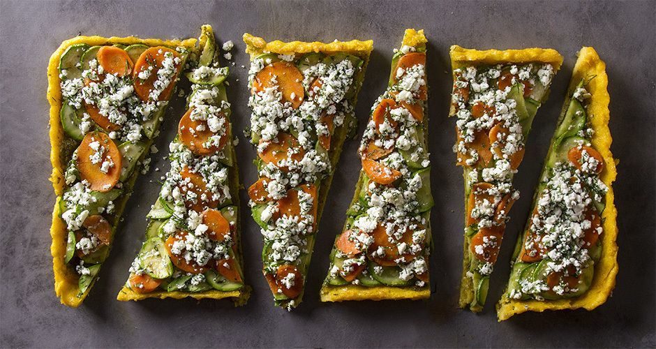 Συστατικά Για την βάση της τάρτας 500 γρ. νερό 140 γρ. πολέντα 1 κύβο λαχανικών 50 γρ. τριμμένη γραβιέρα 1...
