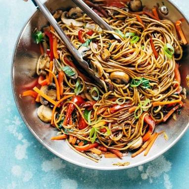 Συστατικά Για τη σάλτσα: 3κ. σούπας σόγια sauce 1κ. γλυκού σησαμέλαιο 1κ. γλυκού καστανή ζάχαρη Για τα ζυμαρικά: 170γρ. άβραστα noodles 1κ. σούπας...