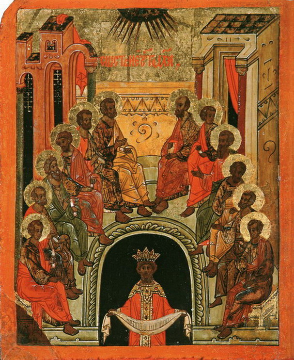 «Πεντηκοστήν εορτάζομεν και Πνεύματος επιδημίαν και προθεσμίαν επαγγελίας και ελπίδος συμπλήρωσιν και το μυστήριον όσον; Ως μέγα τε και σεβάσμιον....