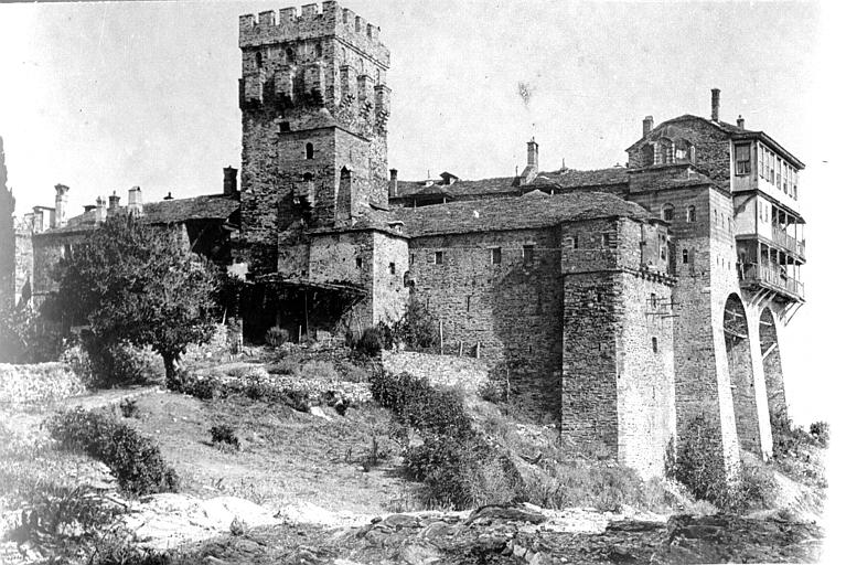 Ο Γέροντας Αζαρίας καθήμενος, με την ευλογημένη συνοδεία του. Η καταγωγή του ήταν από τα Βουρλά της Σμύρνης. Υπήρξε υποτακτικός και διάδοχος του ιερομονάχου Αβερκίου Αγιαννανίτου († 1915) της Καλύβης του Τιμίου Προδρόμου. Ήταν πάντοτε συνετός, σιωπηλός και νηστευτής. Ποτέ δεν έκανε την παραμικρή κατάλυση στις καθιερωμένες νηστείες της Εκκλησίας. Ακόμη και όταν ήταν άρρωστος. Στις καθημερινές ιερές ακολουθίες πάντα πήγαινε πρώτος και έφευγε τελευταίος. Το ίδιο και στις συχνές ολονύκτιες αγρυπνίες του Κυριακού. Το εργόχειρό του ήταν να φτιάχνει καλογερικούς σκούφους. Είχε πάντοτε αδιάλειπτη προσευχή και τα μοναχικά του καθήκοντα τηρούσε απαράβατα. Πρόσεχε πολύ τα λόγια του. Κανένας δεν τον άκουσε να πει απρεπή κουβέντα. Ήταν προσηλωμένος στη θεωρία του κάλλους του Θεού. Αγαπούσε να μελετά τη Νέα Κλίμακα του οσίου ...