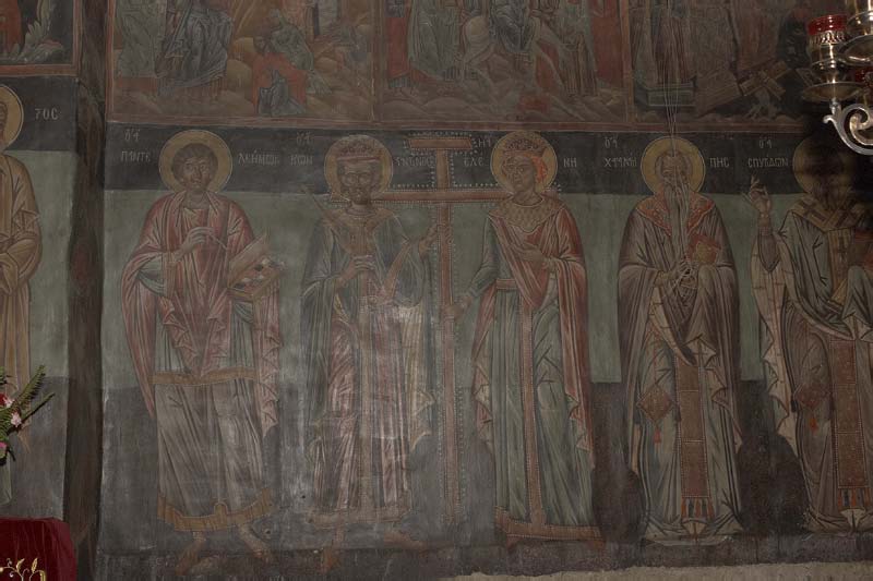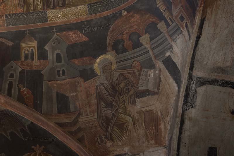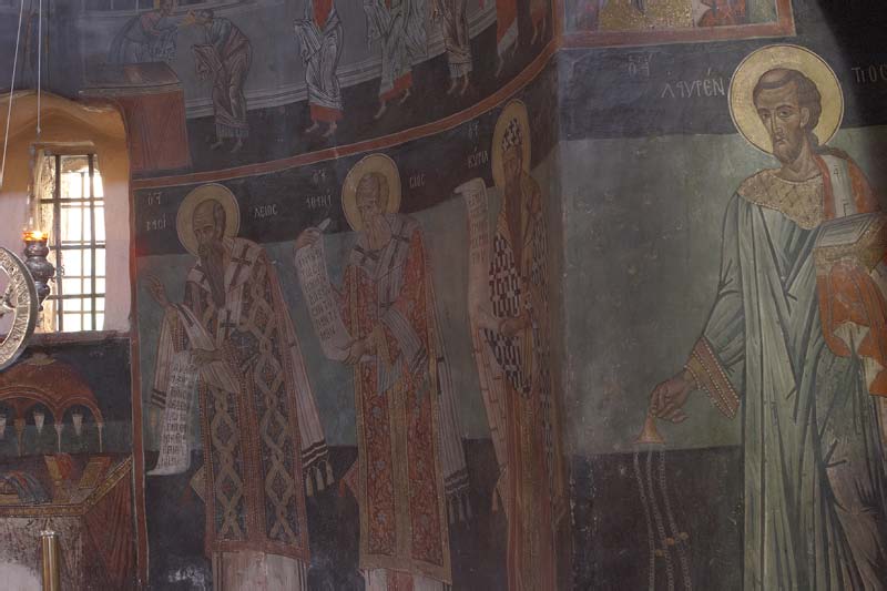 Για τον αγιογράφο και τη χρονολογία αγιογραφήσεως υπάρχει επιγραφή κάτω από το τόξο του παραθύρου, μέσα στην πρώτη δεξιά κόγχη: