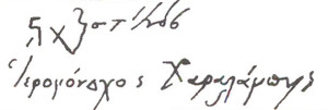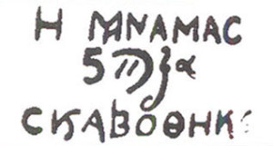 Από το χάραγμα αυτό με τα διαπλεκόμενα γράμματα έχουν διασωθεί οι δύο αυτές λέξεις.