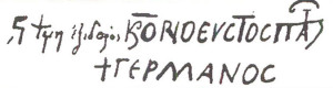 ,ςψμη (= 6748 = 1240) ΕΞΕΔ[ΗΜΗΣΕΝ] ΠΡΟΣ Κ[ΥΡΙ]ΟΝ Ο ΕΥΣ[ΕΒΕΣΤΑ]ΤΟΣ ΠΑΤΡ[ΙΑΡΧΗ]Σ + ΓΕΡΜΑΝΟΣ