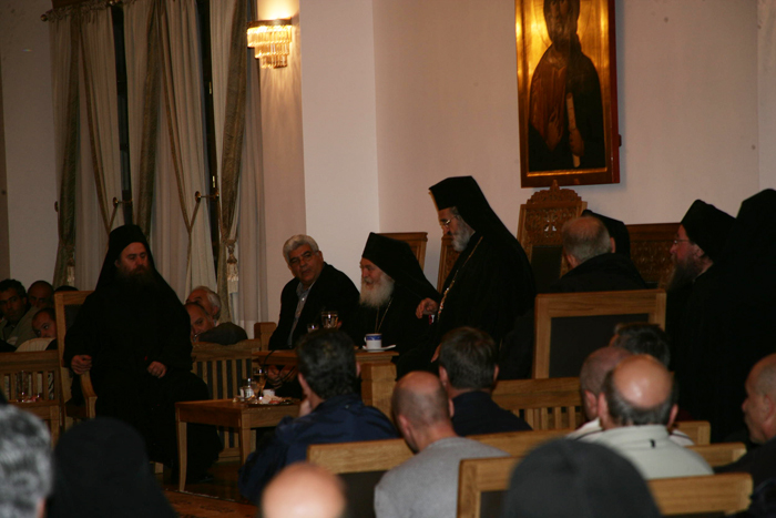 Το πρόγραμμα ξεκίνησε το Σάββατο πρωί (11:30 πμ) με την υποδοχή του σεβασμιότατου και της συνοδείας του από την αδελφότητα της Ι.Μ.Μ. Βατοπαιδίου η οποία ήταν πολύ όμορφη και συγκινητική. Και λέω συγκινητική γιατί έχουμε ξεχάσει πως είναι η – εκ των αρχαίων χρόνων – άδολη και παραδοσιακή Ελληνική υποδοχή & φιλοξενία που κάνει τον φιλοξενούμενο να νοιώθει σημαντικός και ότι βρίσκεται σε ένα οικείο χώρο, αν και μακριά από το σπίτι του.