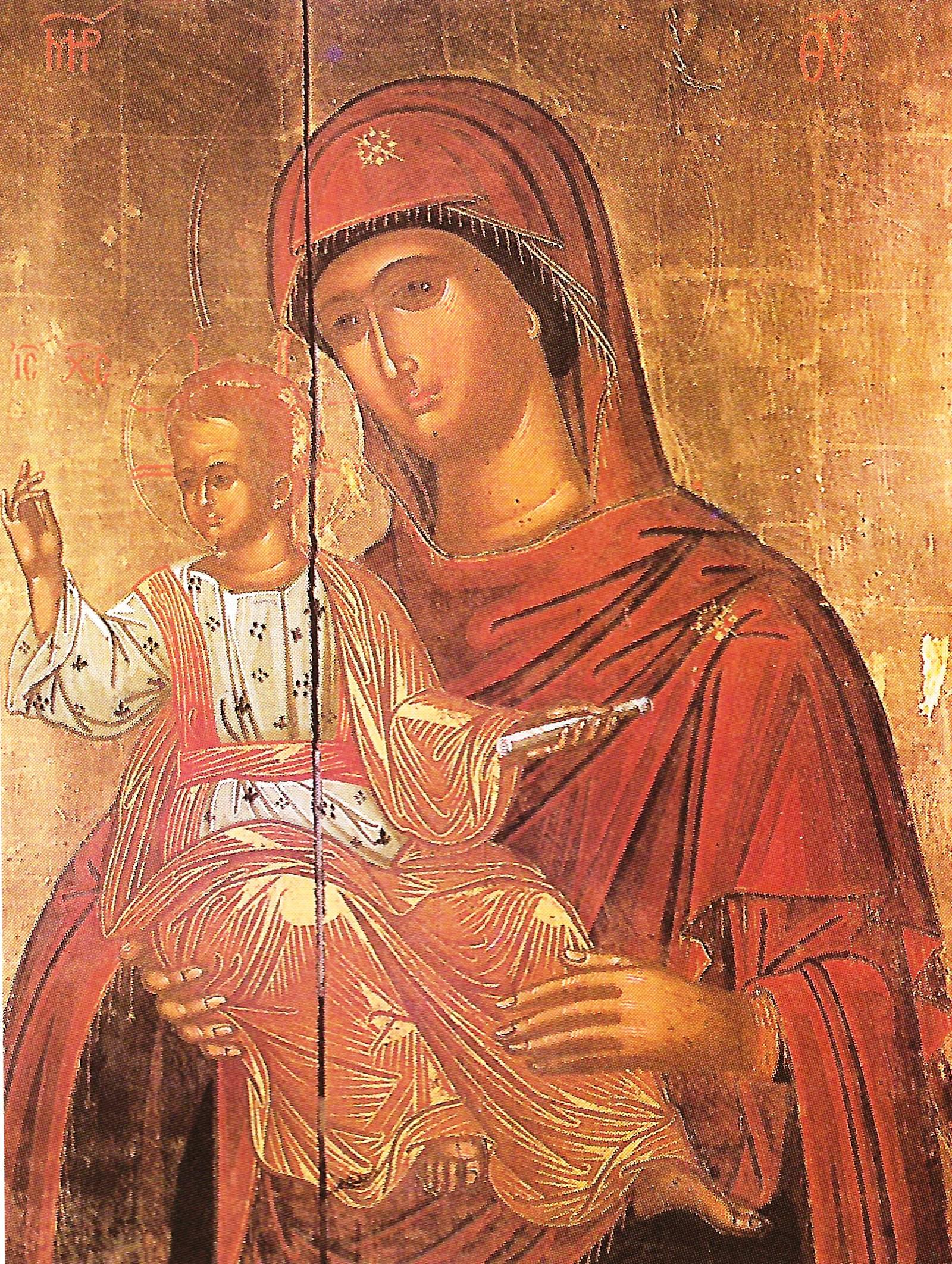 Η Παναγία με τον Χριστό. Φορητή εικόνα (έτους 1790) στο τέμπλο του κυρίως ναού του καθολικού. Είναι αφιέρωμα του ηγουμένου Παρθενίου.