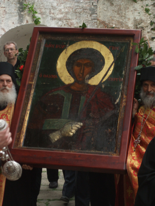 Μετά το τέλος της Θείας Λειτουργίας έγινε λιτανεία της δεύτερης αυτής θαυματουργού εικόνας του αγίου Γεωργίου με πορεία από το μοναστήρι ως το σημείο που βρέθηκε η εικόνα του αγίου και που βρίσκεται εκκλησάκι στο όνομα του αγίου.