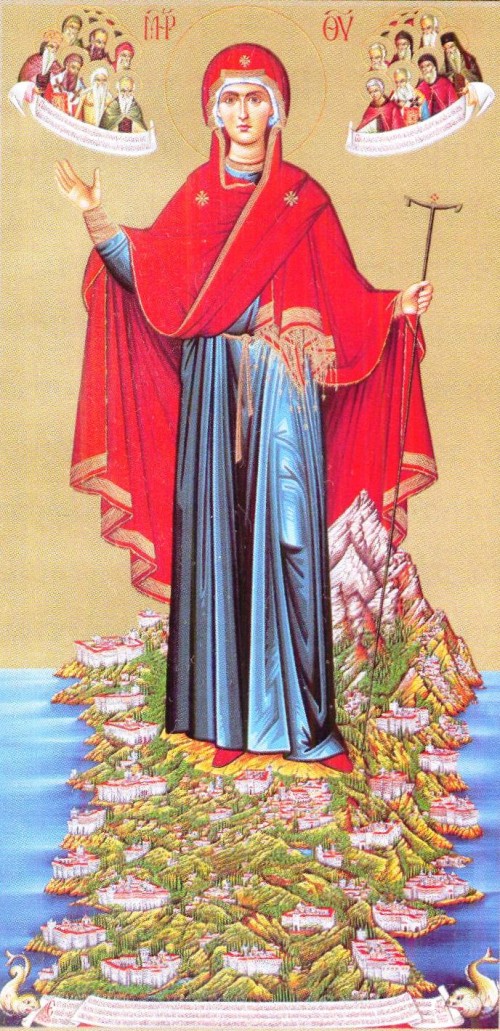 Η Παναγία ευχαριστημένη από την ομορφιά του Όρους και τον κλήρον που της δόθηκε, προσευχήθηκε στον Χριστό λέγοντας: