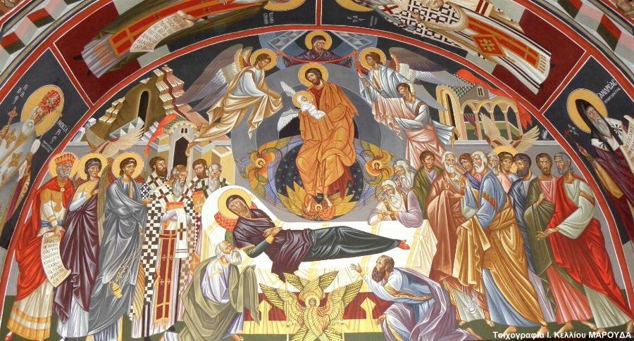 Ο θάνατός της είναι ζωηφόρος, μεταβαίνοντας σε ουράνια και αθάνατο ζωή, και η μνήμη τούτου είναι χαρμόσυνη εορτή και παγκόσμια πανήγυρις, που όχι μόνο ανανεώνει τη μνήμη των θαυμασίων της Θεομήτορος, αλλά και προσθέτει τη κοινή και παράδοξη συνάθροιση των ιερών Αποστόλων από κάθε μέρος της γης για την πανίερη κηδεία της, με θεολήπτους ύμνους, με τις αγγελικές επιστασίες και χοροστασίες και λειτουργίες γι΄ αυτήν.