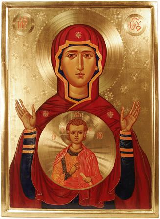 Υπάρχει όμως ένα πρόσωπο το οποίο ήταν γνωστό αιώνες πριν από την εμφάνισή του, η δε παρουσία του στον κόσμο στάθηκε η πιο μεγάλη ευλογία γι’ αυτόν. Και αυτό είναι η Παρθένος Μαρία. Η εμφάνισή της οριοθέτησε το τέλος μιας εποχής, της εποχής της πτώσεως και την απαρχή μιας νέας, της εποχής της απολυτρώσεως. Και επειδή είναι η μία και μόνη γυναίκα, που αξιώθηκε να κυοφορήσει το Θεό, έγινε όπως και Εκείνος το ορόσημο των δύο κόσμων, του προ Χριστού και του μετά Χριστόν. Έγινε η πρώτη μετά τον Ένα. Έγινε εκείνη, που μέσα στα πανάχραντα σπλάγχνα της τελεσιουργήθηκε, άπαξ και διά παντός, το απόρρητο μυστήριο της ενώσεως της θείας και της ανθρώπινης φύσεως του Χριστού. Και με τον τρόπο αυτό ταυτίσθηκε απόλυτα και υποστατικά με Εκείνον. Ώστε, όπως αυτός μετά την Ανάσταση Του «ουκέτι αποθνήσκει, θάνατος αυτού ουκέτι κυριεύει», κατά τον Παύλο, έτσι αξιώθηκε και Εκείνη να είναι «και μετά θάνατον ζώσα» και παρούσα μέσα στον κόσμο. Έτσι, -όπως διδάσκουν οι Άγ. Πατέρες – η Θεοτόκος είναι η πρώτη που γεύτηκε τους καρπούς της Αναστάσεως του Χριστού και τη δόξα της κατά χάριν θεώσεως. Και εμείς οι ορθόδοξοι το ζούμε το μυστήριο αυτό της Παναγίας. Το γνωρίζουμε από εμπειρία και το λατρεύουμε. Δεν διαχωρίζουμε το Χριστό από την Παναγία, η οποία τον γέννησε. Δηλ. δεν διαχωρίζουμε τον καρπό από το δένδρο. Ούτε την Παναγία διαχωρίζουμε από τον Θεάνθρωπο Υιό της. Στην ορθόδοξη ψυχή μας δεν υπάρχει ο Χριστός χωρίς την Παναγία (που εκφράζει την ανθρώπινη φύση του) όπως θέλουν οι αιρετικοί, που κρατούν τον καρπό και απορρίπτουν το δένδρο, αλλά ούτε και η Παναγία υπάρχει χωρίς το Χριστό. «Ευλογημένη συ εν γυναιξί, αλλά και ευλογημένος ο καρπός της κοιλίας Σου». Αυτό ακριβώς το ιερό σύμπλεγμα «Χριστός και Παναγία» εκφράζεται στις άγιες εικόνες της βρεφοκρατούσας Θεοτόκου, που δεν εικονίζει τίποτε άλλο, παρά το μυστήριο της ενανθρωπήσεως του Λόγου.