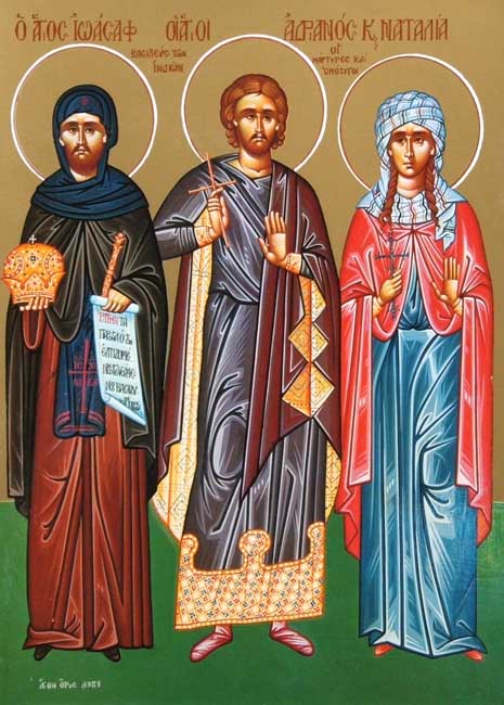 Ο άγιος μάρτυς Αδριανός και η σύζυγός του Ναταλία κατάγονταν από την Νικομήδεια και έζησαν την εποχή των διωγμών, κατά τους χρόνους του βασιλέως Μαξιμιανού (298 μ. Χ.). Η δύσκολη εκείνη περίοδος για την Εκκλησία, έχει να επιδείξη αναρίθμητα πλήθη Ομολογητών και Μαρτύρων, γενναίων αθλητών του πνευματικού στίβου, οι οποίοι επότισαν με το αίμα τους το δένδρο της αυθεντικής πίστης και της αληθινής ελευθερίας. Και ταυτόχρονα φανέρωσαν με την συμπεριφορά και το ήθος τους το τί σημαίνει αρχοντική αγάπη, πραγματική λεβεντιά, υπέρβαση του θανάτου στα όρια της προσωπικής υπάρξεως και βίωση της όντως ζωής, που νεκρώνει τον θάνατο.