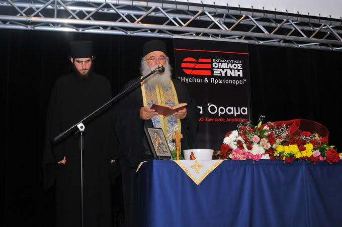 Επίσης τόνισε ότι η ελληνική σημαία που έχουμε ακόμα και σήμερα, έγινε από το ράσο ενός καλόγερου και από μια φουστανέλα. Αυτή η σημαία βασίζεται σε δυο ιδανικά, την αγάπη στην ορθόδοξη πίστη και την αγάπη στην πατρίδα μας. Δυο άστρα που θέλουν να τα σβήσουν, δυο άστρα που λέγονται ΕΛΛΑΔΑ ΚΑΙ ΟΡΘΟΔΟΞΙΑ, τα οποία κάποιοι θέλουν να τα εξαφανίσουν. Όχι σκλάβοι στην νέα εποχή. Μείνετε Ελεύθερα πρόσωπα. Αγκιστρωθείτε φίλοι μου σε αυτές τις δυο δυνάμεις, σε αυτά τα δυο άστρα, την Ελλάδα και την Ορθοδοξία και να είστε σίγουροι ότι θα πάτε μπροστά.