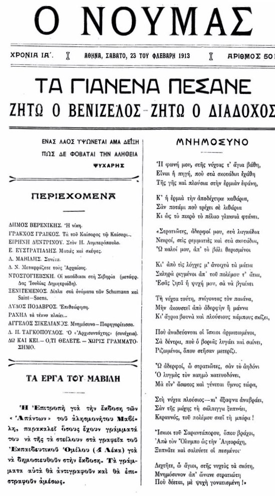 Τη μεγάλη στρατιωτική νίκη ανήγγειλε στη Βουλή, ο ίδιος ο Ελευθέριος Βενιζέλος.