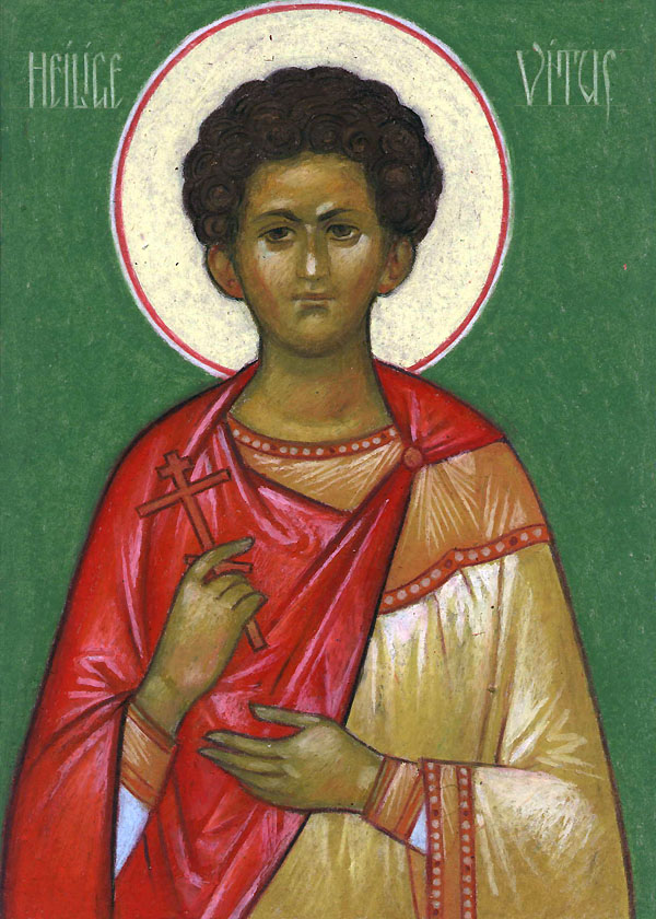 St Vitus was the son of an illustrious Sicilian dignitary, the pagan Gelas. Gelas tried to turn his son from Christianity, but failed. Paternal love then turned to hatred, and he decided to kill Vitus.