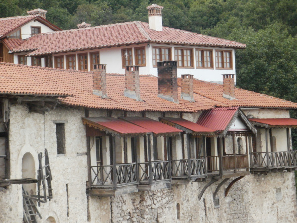 Το όλο κτιριακό συγκρότημα της Μονής προβάλλει σαν φρούριο και εντυπωσιάζει με την βαθμιδωτή προσαρμογή του στις απότομες κλίσεις του εδάφους, τους εξώστες, την ανεμόσκαλα και το δίχτυ, απ’ όπου γινόταν η πρόσβασι μέχρι το 1962.