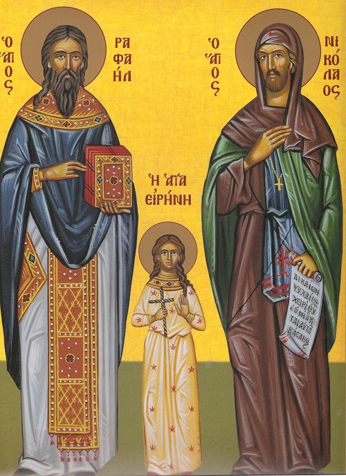18.00 μ.μ. Εσπερινός και Παράκληση προς τους Αγίους Ραφαήλ, Νικόλαο και Ειρήνη.