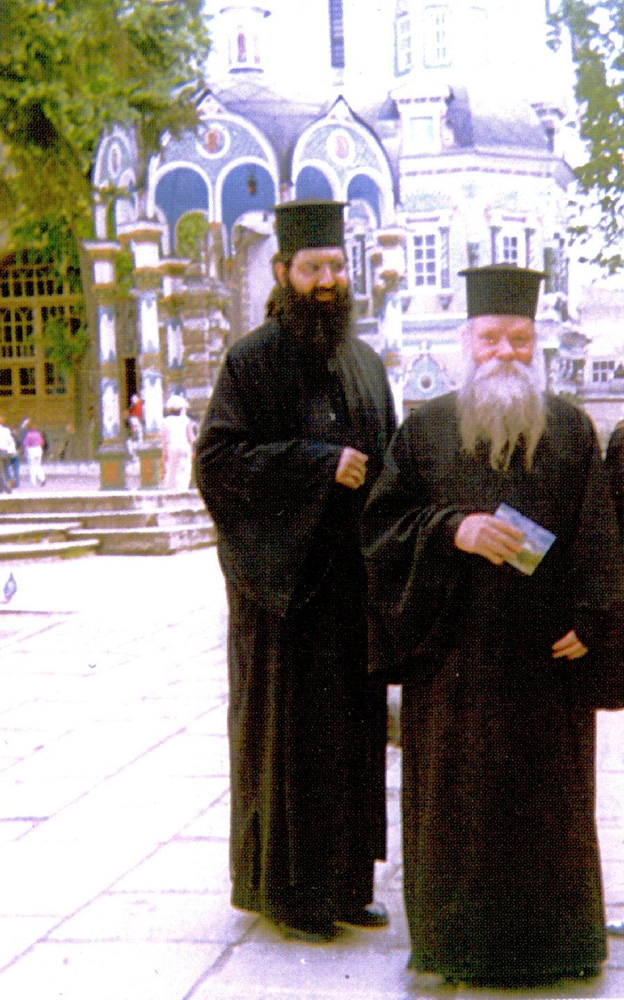 O Gerontas Evmenios Saridakis me ton metepeita Mitropoliti Morfou Neophyto (tote os diakono) sti Rosia