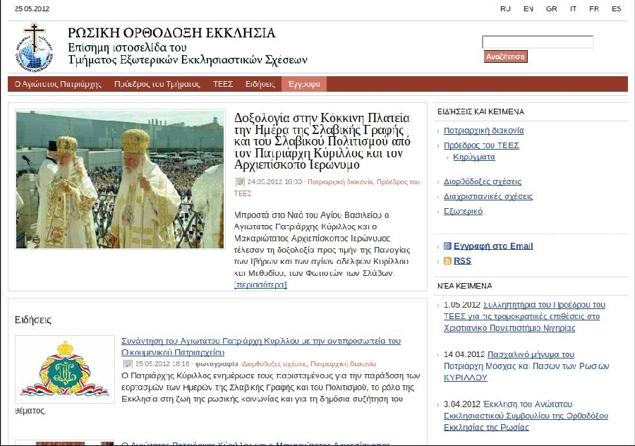 Στην ιστοσελίδα του Τμήματος Εξωτερικών Εκκλησιαστικών Σχέσεων της Ρωσικής Ορθόδοξης Εκκλησίας μπορείτε να μπείτε πατώντας εδώ