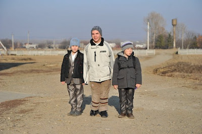 Συναντά άλλα παιδιά από το ορφανοτροφείο. Βλέποντας την κάμερα, καθίσαν να βγάλουν φωτογραφία