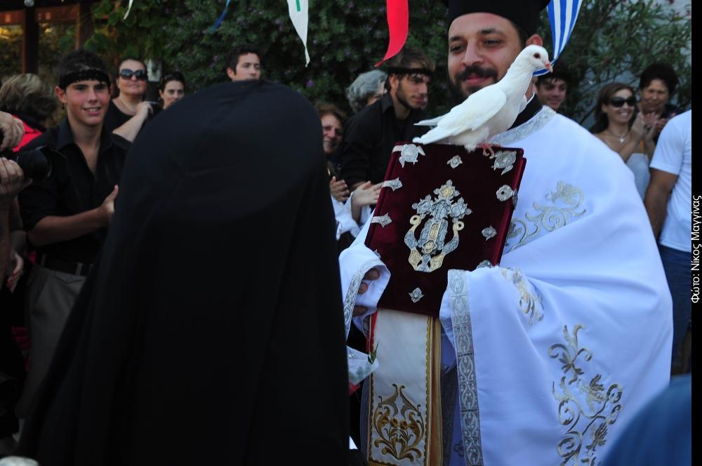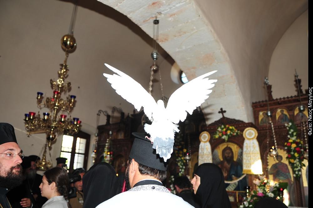 Και ξαφνικά την ώρα που ο Οικουμενικός Πατριάρχης εισέρχονταν στην Ιερά Μονή Τιμίου Προδρόμου Κορακιών, ένα λευκό περιστέρι «προσγειώθηκε» πάνω στο Ιερό Ευαγγέλιο που κρατούσε ο Ιερέας. Κλήρος και λαός ξαφνιάστηκε από το γεγονός ενώ ο Οικουμενικός Πατριάρχης προσκύνησε το Ευαγγέλιο και κοίταζε χαμογελώντας το περιστέρι που έστεκε αγέρωχο επί του Ιερού Ευαγγελίου.