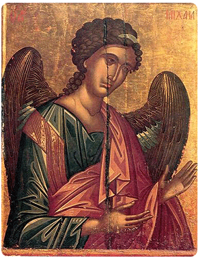 Τότε, λοιπόν, όταν σχίσθηκε ο ουρανός καί έπεφταν οι δαίμονες, ο Μέγας Αρχιστράτηγος Μιχαήλ, βλέποντας την ελεεινή έκπτωση των Αγγέλων, κατενόησε την αιτία της πτώσεώς τους, και γι’αυτό με την υποταγή και την ταπείνωση, που έδειξε ως ευχάριστος δούλος και πιστός οικέτης προς τον Δεσπότην του Θεό, διεφύλαξε και την δική του δόξα και λαμπρότητα, που του χαρίσθηκε από τον Θεό, και την δόξα των άλλων Αγγελικών ταγμάτων. Γι’αυτό εξαιτίας αυτής της υποταγής και ευγνωμοσύνης του διορίσθηκε από τον Παντοκράτορα Θεό να είναι πρώτος των Αγγελικών τάξεων.