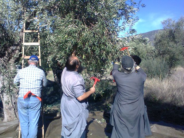 Στις φωτογραφίες που δημοσιεύει το www.religiousnews.gr φαίνεται ξεκάθαρα ο Μητροπολίτης να γίνεται ένα με τους εθελοντές και τους απλούς κληρικούς και να μαζεύει ελιές.