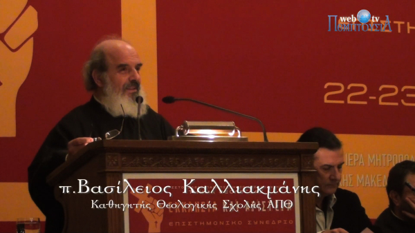 Ο π. Βασίλειος Καλιακμάνης είναι Καθηγητής της Θεολογικής Σχολής του Α.Π.Θ στον τομέα της συστηματικής θεολογίας με έμφαση την ηθική και ποιμαντική θεολογία. Συμμετείχε στην συνεδρία με θέμα: «Θέµατα εκκλησιαστικής περιουσίας και µισθοδοσίας του κλήρου». Δείτε το βίντεο: