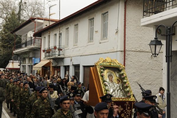λιτανευτική πομπή την εικόνα της Θεομήτορος. Στό αστυνομικό Τμήμα της