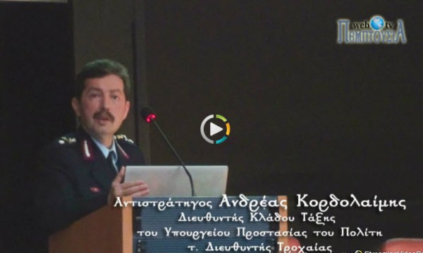 Ημερίδα: ΑΣΦΑΛΕΙΑ ΣΤΟ ΔΡΟΜΟ, ΑΣΦΑΛΕΙΑ ΣΤΗ ΖΩΗ – ΑΦΙΕΡΩΜΑ ΣΤΟΥΣ ΝΕΟΥΣO διευθυντής του Κλάδου Τάξης του Υπουργείου Προστασίας του Πολίτη και τ. διευθυντής της Τροχαίας, Αντιστράτηγος Ανδρέας Κορδολαίμης, μιλά στην ημερίδα για την οδική ασφάλεια με θέμα: «Παιδιά και τροχαίο ατύχημα» Δείτε το βίντεο: