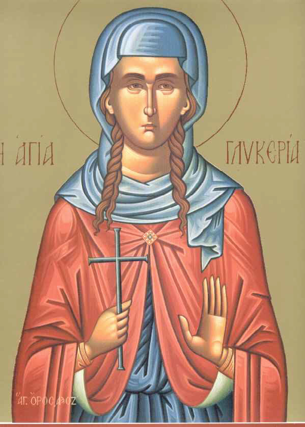 Τὴν καλλιπάρθενον, Χριστοῦ τιμήσωμεν, τὴν ἀριστεύσασαν πόνοις ἀθλήσεως, καὶ ἀσθένεια τῆς σαρκός, τὸν ὄφιν καταβαλοῦσαν πόθω γὰρ τοῦ Κτίσαντος, τῶν βασάνων τὴν ἕφοδον, παρ’ οὐδὲν ἠγήσατο, καὶ θεόθεν δεδόξασται πρὸς ἣν ἀναβοήσωμεν πάντες, χαίροις θεόφρον Γλυκερία.