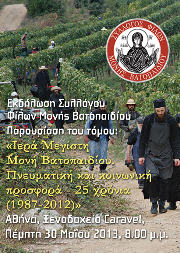 Παρουσίαση του τόμου: «Ιερά Μεγίστη Μονή Βατοπαιδίου. Πνευματική και κοινωνική προσφορά – 25 χρόνια (1987-2012)» 27 Μαΐου 2013
