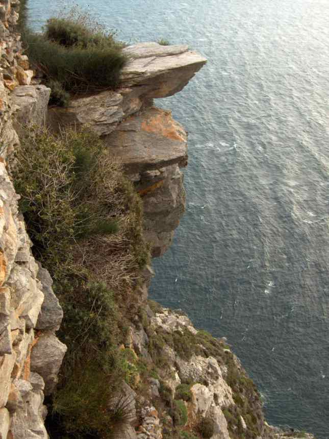Η κάθοδος προς το σπήλαιο είναι μια πραγματική περιπέτεια. «Απότομη η ευλογημένη κατωφέρεια »στα κάθετα του φοβερού αυτού αγιορείτικου Καιάδα και σε πιάνει ίλιγγος αν επιμείνεις να δεις μέχρι που φτάνουν προς τα κάτω τα γρανίτινα κράσπεδά του. Διακόσια πενήντα σκαλοπάτια ,γεμάτα από κίνδυνο κατακρημνισμού, ακολουθούν τον απότομο γκρεμό. Μεγάλη η κλίση του γκρεμού και σε μερικά σημεία φθάνει σχεδόν το 100%.Χρειάζεται ιδιαίτερη προσοχή και καλά θα κάνει ο ευλαβής προσκυνητής εκτός από την επίκληση του ονόματος της Παναγίας και του Αγίου, να αποφεύγει να βλέπει αριστερά και κάτω προς την θάλασσα, κυρίως αν αντιμετωπίζει προβλήματα καρδιάς και ίλιγγων.