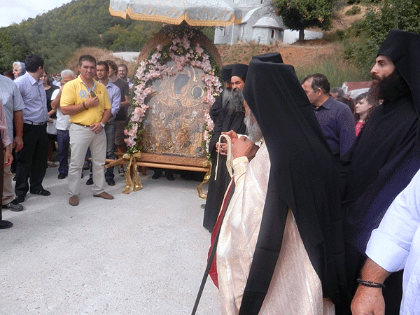 Μετά το πέρας της Θείας Λειτουργίας θα ακολουθήσει λιτάνευση της Θαυματουργής Εικόνας στα πέριξ της Μονής.