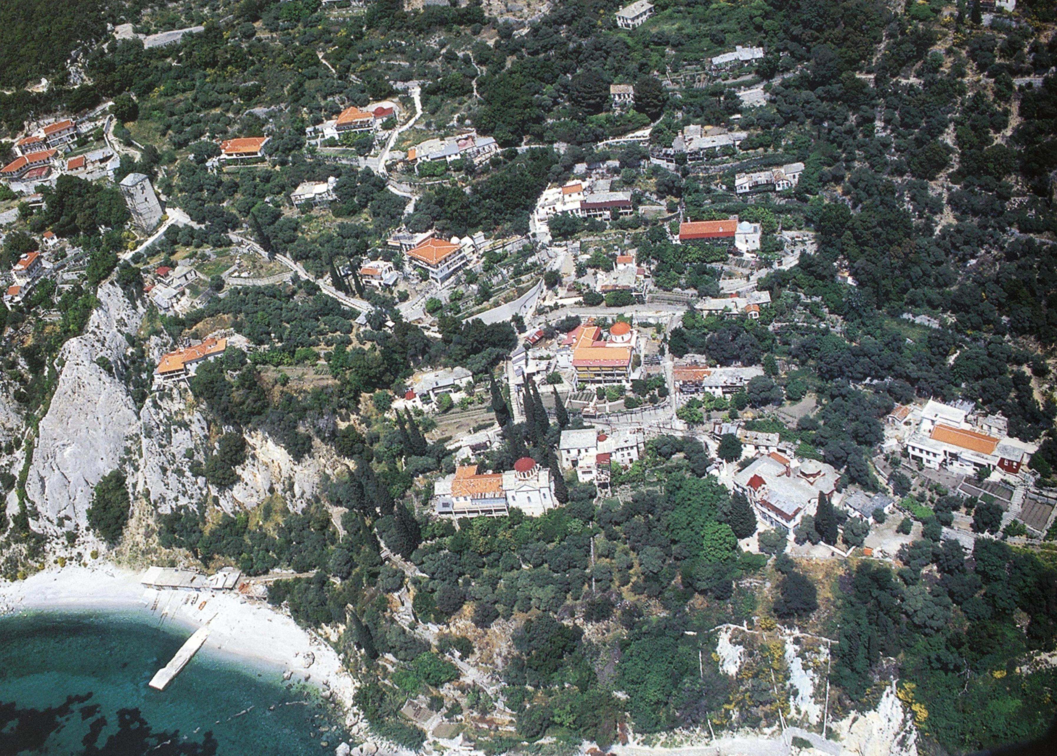 Πανοραμική άποψη της Νέας Σκήτης, η οποία διοικητικά υπάγεται στην Ιερά Μονή Αγίου Παύλου.