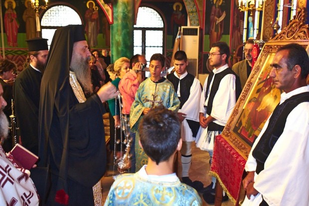 Στο κήρυγμά του ο π. Επιφάνειος ευχαρίστησε και εκ μέρους του εκκλησιαστικού συμβουλίου, τον Καθηγούμενο και τους πατέρες της Ιεράς Μονής Βατοπεδίου για την αγιογράφηση της Ιεράς Εικόνος.
