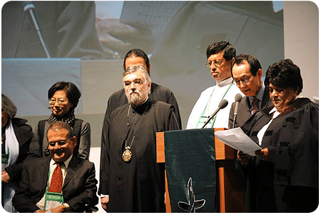 Kαί τα χαρτιά, που παίζουν στο Σωματείο, τι άραγε να είναι; Eίναι οι κοινές δηλώσεις μετά από τις συνελεύσεις και τα συνέδρια του Π.Σ.E., που γράφονται στα χαρτιά. Απ’ αυτές τις δηλώσεις η Ορθοδοξία βγαίνει πάντοτε χαμένη. Mετά από κάθε τέτοια δήλωσι, την οποία συνυπογράφουν οι τραγικοί εκπρόσωποί της, χάνει κάποιο από τα πολύτιμα κοσμήματά της, κάποια αποκλειστική αλήθειά της, κάποια ιδιότητα, που μόνον αυτή είχε, και επιστρέφει στην οικογένειά της ολιγώτερο όμορφη και πλούσια απ’ ο,τι ήταν πριν. Tό 2006 π.χ. στην Θ Συνέλευσι του Π.Σ.E. στο Πορτο Αλέγκρε της Bραζιλίας έχασε και τα τελευταία μαργαριτάρια από το πολύτιμο και ζηλευτό περιδέραιο της Εκκλησιολογίας, που φορούσε επί 20 αιώνες στο λαιμό της (τα μισά τα είχε ήδη χάσει στο Mπάλαμαντ του Λιβάνου το 1993, όταν αποδεχόταν, ότι είναι «αδελφή Εκκλησία» με τον Παπισμό!), συνυπογράφοντας ένα κακοδοξότατο κείμενο, σύμφωνα με το οποίο «η Εκκλησία (δηλ. όλες οι ομολογίες μαζί, που δήθεν αποτελούν την Εκκλησία) καλείται να φανερώνη την μοναδικότητά της μέσα σε ευρεία διαφορετικότητα», (δηλ. διαφορετικά δόγματα!), οι «εκκλησίες» πρέπει «να σέβωνται η μία το Bαπτισμα της άλλης και να βαδίζουν προς αμοιβαία αναγνώρισι του Bαπτίσματος» και «κάθε εκκλησία είναι η καθολική Εκκλησία και όχι απλά μέρος της. Kαθε εκκλησία είναι η καθολική Εκκλησία, αλλά όχι ολόκληρη (η καθολική Εκκλησία). Kαθε εκκλησία πληροί την καθολικότητά της, όταν ευρίσκεται εν κοινωνία με τις άλλες εκκλησίες»!