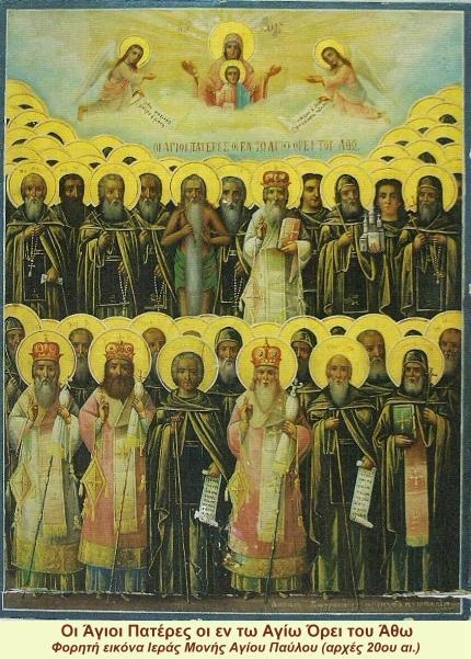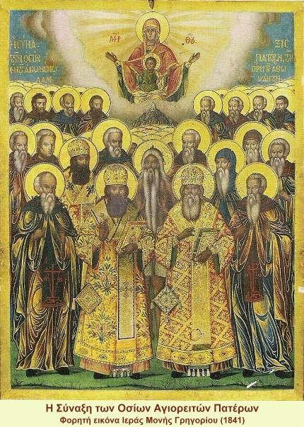 Οι άγιοι του Αγίου Όρους είναι οι φιλόστοργοι πατέρες των Αγιορειτών. Η αγάπη μας προς αυτούς προέρχεται από χρέος και ευγνωμοσύνη για τις δωρεές τους. Είναι αγάπη τέκνων προς κηδεμόνες, μαθητών προς διδασκάλους. Αυτοί μετέβαλαν την αγριότητα του Όρους σε ημερότητα, τον ακατοίκητο τόπο τον έκαναν κατοικήσιμο, την έρημο τη μετέτρεψαν σε πολιτεία. Έγιναν κτήτορες μονών και σύναξαν πλησίον τους πλήθη μοναχών. Όσο ζούσαν ήταν σύμβουλοι και μετά την τελευτή τους έγιναν πρεσβευτές για όλους. Μοναχοί από διαφόρους τόπους συγκεντρώθηκαν σ’ ένα τόπο και πήραν ένα όνομα. Ακόλουθοι του πρώτου ησυχαστή Πέτρου, που του είπε η Θεοτόκος τη χαροποιό επαγγελία, περί συνεχούς προστασίας του Όρους. Και έγινε πράγματι η Θεοτόκος μόνιμη σκέπη, φρουρός και ιατρός όχι μόνο των άγιων, αλλά και όλων των μοναχών.