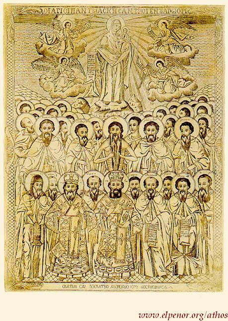 Οι άγιοι του Αγίου Όρους ανέδειξαν το Όρος και το έκαναν θαυμαστό όπως το Σινά, τα όρη της Παλαιστίνης, το Πηλούσιο, το Γαλήσιο, τον Λάτρο, τον Όλυμπο της Βιθυνίας. Οι άγιοι και οι μαθητές τους στο πέρασμα των αιώνων, ως όσιοι και μάρτυρες, ησυχαστές και κοινοβιάτες, έγκλειστοι και ιεραπόστολοι, αναδείχθηκαν λαμπροί συνεχιστές της γνήσιας Ορθόδοξης μοναχικής παραδόσεως, που τη φύλαξαν όπως γεννήθηκε στα λίκνα του Ανατολικού Μοναχισμού με αγρυπνίες και θυσίες…