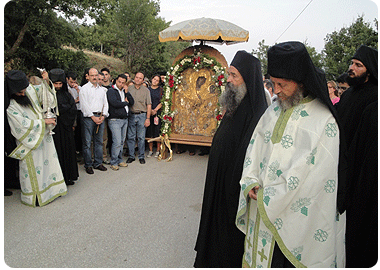 Μετά το πέρας της Θείας Λειτουργίας θα ακολουθήσει λιτάνευση της Θαυματουργῆς Εικόνας στα πέριξ της Μονής.