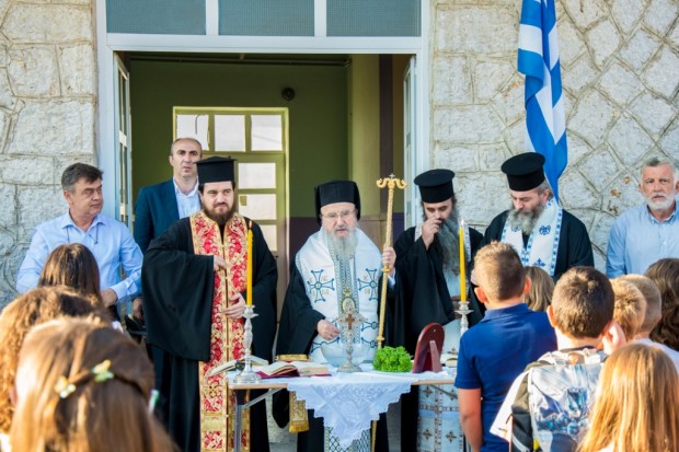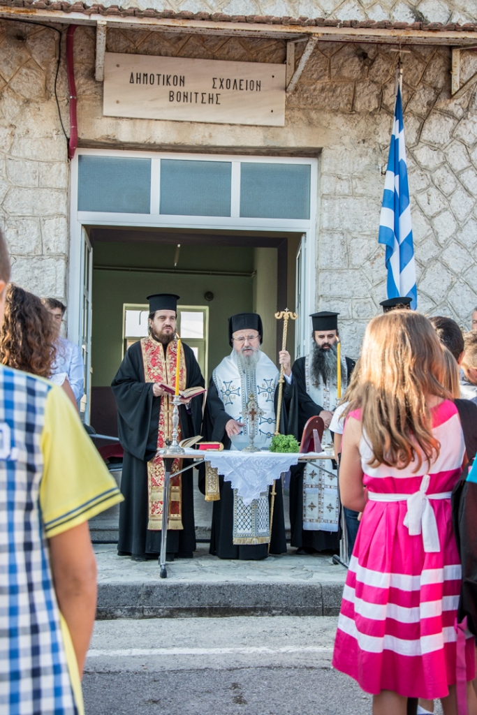 Τα σχολεία της Βόνιτσας επισκέφθηκε ο Σεβασμιώτατος Μητροπολίτης Αιτωλίας και Ακαρνανίας κ. Κοσμάς σήμερα το πρωί για να τελέσει την ακολουθία του αγιασμού για την έναρξη της νέας σχολικής χρονιάς.