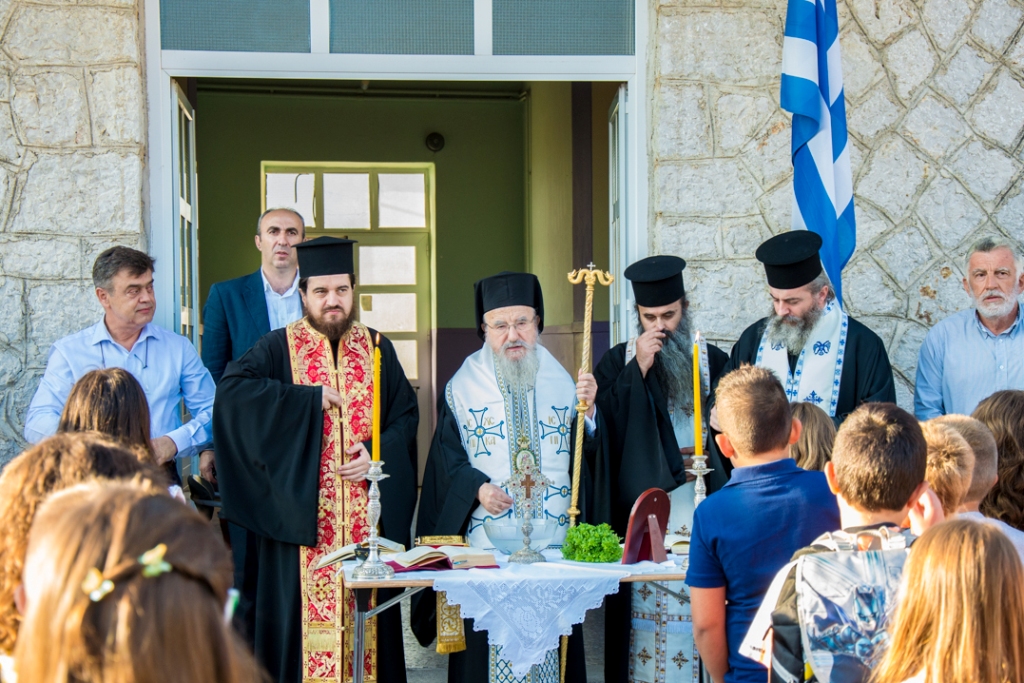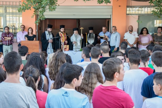 Σήμερα, πρώτη ημέρα της νέας σχολικής χρονιάς, τελέσαμε την ακολουθία του αγιασμού και προσευχηθήκαμε όλοι μας για την υγεία και το φωτισμό των σεβαστών διδασκάλων σας και των γονέων σας, αλλά και για την δική σας υγεία, την πρόοδο και το φωτισμό.