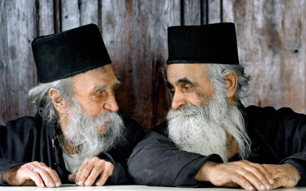 «Ο γέροντας Νεκτάριος και ο υποτακτικός του Χριστόφορος αποφάσισαν μετά τη στρατιωτική τους θητεία να υπηρετήσουν ως ράφτες -ήταν το διακόνημά τους- στις Καρυές. Τα πενήντα χρόνια της κοινής τους πορείας περιγράφονται στο μοναδικό τους βλέμμα. Καιρό μετά, επιστρέψαμε με τις φωτογραφίες. Ο γέροντας είχε κοιμηθεί. Ο πρώην υποτακτικός και τωρινός γέροντας του κελιού συγκινήθηκε και μας οδήγησε με ένα νεύμα στον τάφο, έσκυψε κοντά στον σταυρό κρατώντας τη φωτογραφία στο χέρι και είπε: “Βγάλε μας μια τελευταία φωτογραφία παρέα”».