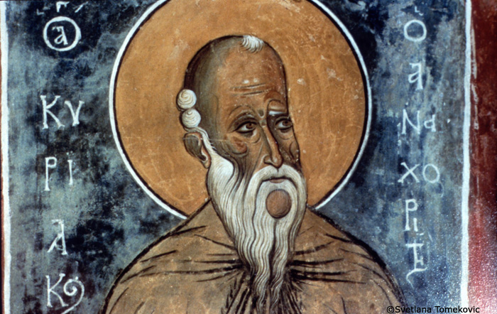 Ἀπαλῶν ἐξ ὀνύχων τῷ Χριστῷ ἠκολούθησας, τὴν ἀγγελικὴν πολιτείαν ὁλοτρόπως ἑλόμενος· διὸ ἐν ταῖς ἐρήμοις προσχωρῶν, τῶν θείων ἠξιώθης δωρεῶν, θεραπεύων πᾶσαν νόσον Κυριακέ, τῶν πίστει προσιόντων σοι. Δόξα τῷ σὲ δοξάσαντι Χριστῷ, δόξα τῷ σὲ στεφανώσαντι, δόξα τῷ ἐνεργοῦντι διὰ σοῦ, πᾶσιν ἰάματα.