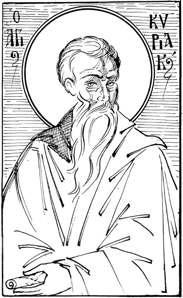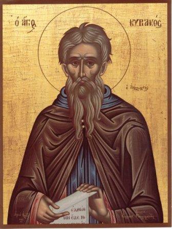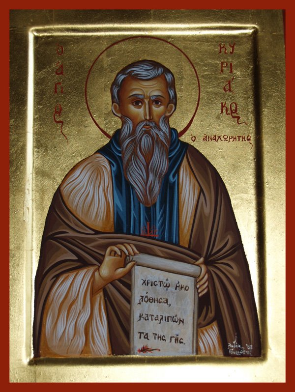 Τῆς ἐρήμου πολίτης καὶ ἐν σώματι ἄγγελος, καὶ θαυματουργὸς ἀνεδείχθης, θεοφόρε Πατὴρ ἡμῶν Κυριακέ· νηστείᾳ ἀγρυπνίᾳ προσευχῇ, οὐράνια χαρίσματα λαβών, θεραπεύεις τοὺς νοσοῦντας, καὶ τὰς ψυχὰς τῶν πίστει προστρεχόντων σοι. Δόξα τῷ δεδωκότι σοι ἰσχύν, δόξα τῷ σὲ στεφανώσαντι, δόξα τῷ ἐνεργοῦντι διὰ σοῦ πᾶσιν ἰάματα.