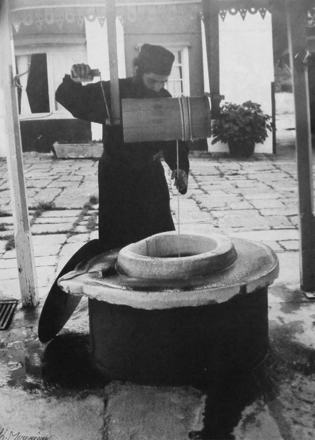 Ο μοναχός εκείνη τη στιγμή μόλις έβγαζε νερό από ένα βαθύ πηγάδι.